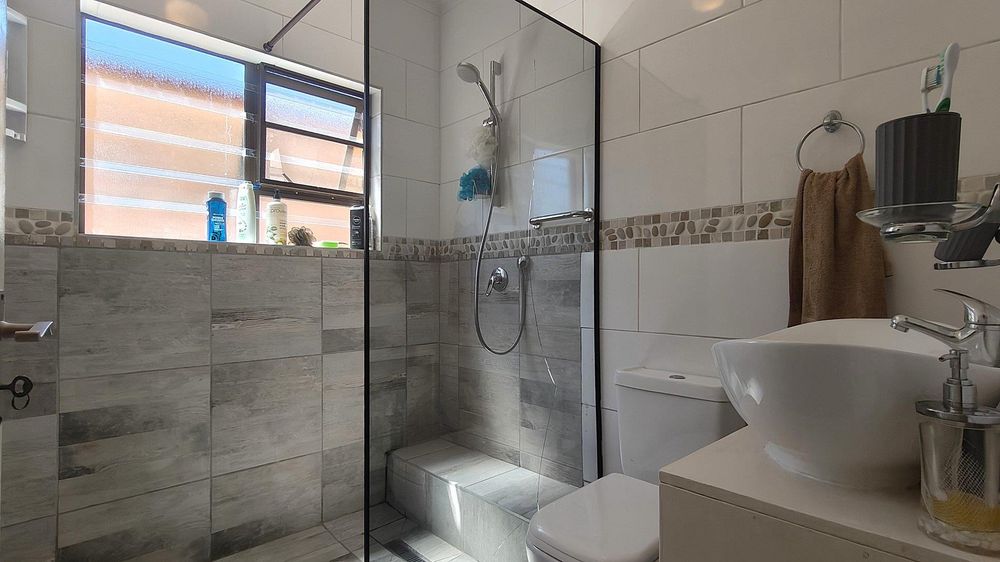 This freshly renovated townhouse is designed with comfort and ease in mind, all on a single level. It features a bright and sunny open-plan TV room and lounge, complemented by an enclosed braai/barbeque room perfect for entertaining. The dining room flows seamlessly into a cozy kitchen, which offers flexibility with an additional room that can be transformed into a hobby space, sunroom, or extended into a scullery/pantry/storage area and linen room. The property includes two well-appointed bedrooms with built-in cupboards, sharing a modern shower room complete with a WC and basin. Step outside and enjoy the meticulously manicured communal gardens, complete with inviting outdoor seating areas—ideal for soaking up the sun or relaxing in the cool shade.