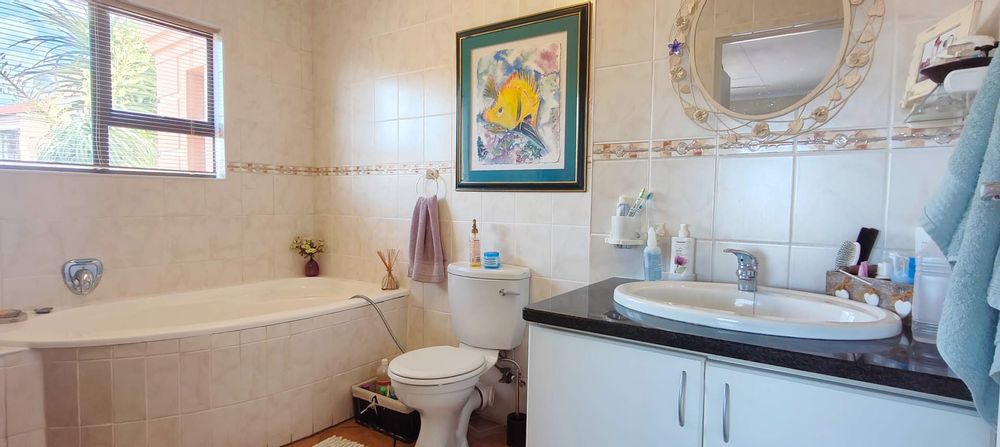 First Floor: The first floor is designed for both relaxation and entertaining, enjoy the open-plan dining room and lounge area with built in braai that seamlessly leads to a balcony, offering breathtaking sea views. The modern kitchen includes a breakfast nook and is complemented by a separate scullery room, which opens to a courtyard area, this space can serve as additional parking, perfect for a car or boat. The main en-suite bedroom is a true retreat, boasting an en-suite bathroom, ample built-in cupboards, and its own balcony with stunning sea views. Additionally, there are two family bedrooms on this floor that share a well-appointed shower room.