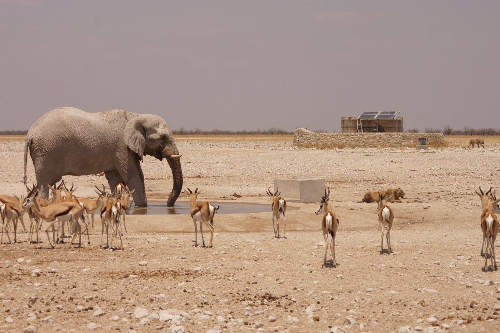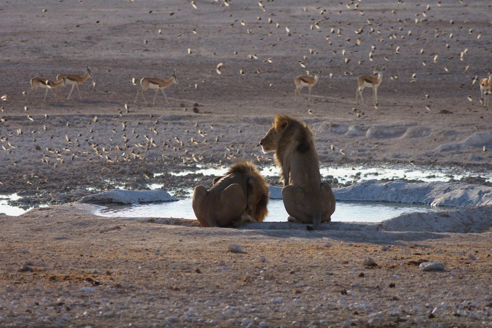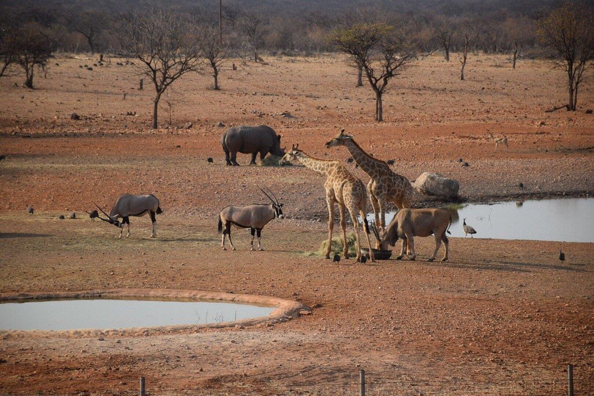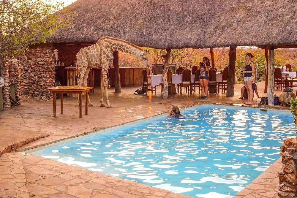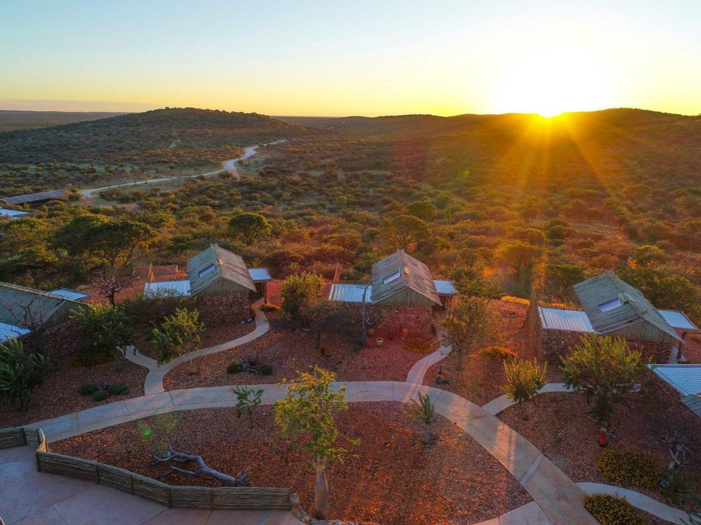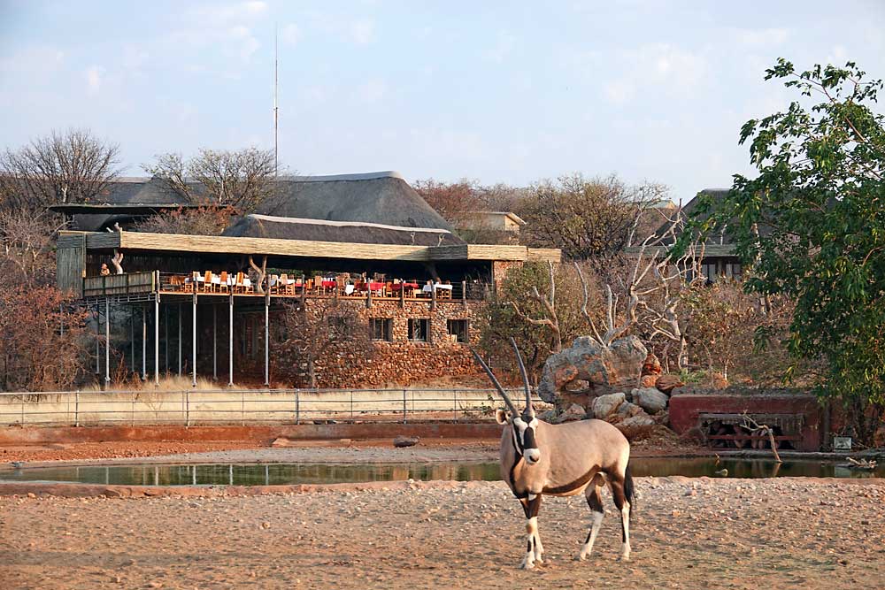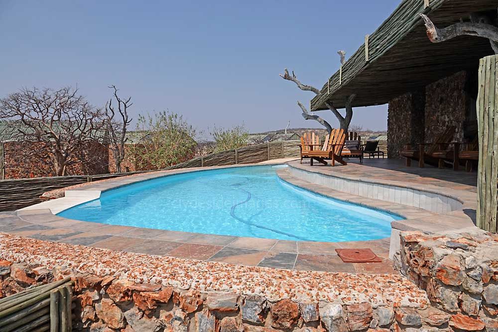 This exclusive property is situated near the famous Etosha National Park covering 24000 (twenty four thousand) hectares of natural Namibian landscape, consisting of 21 rustic, spacious, air conditioned rooms with shaded patios offering a view over the landscape, a bar, restaurant and swimming pool for your relaxation. The lapa and deck overlook a water hole ideal for wildlife photography or go on a scenic game drive to other various water holes for a proper bush experience.
