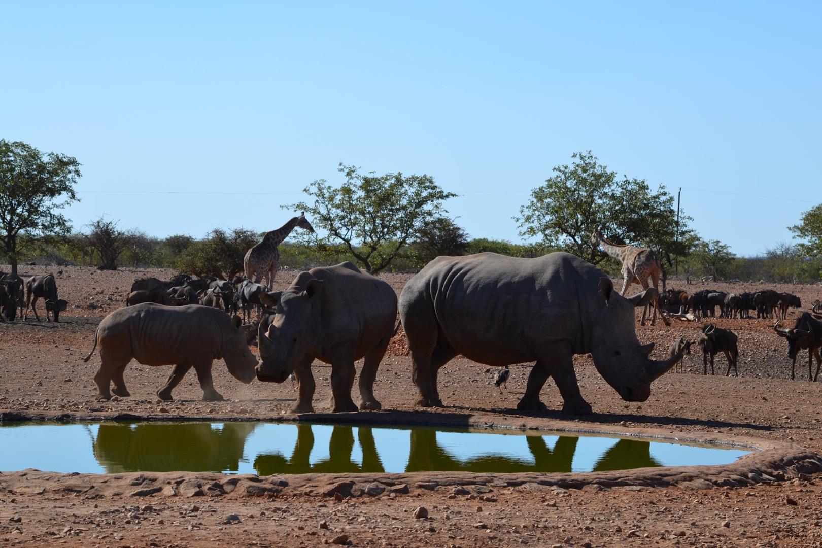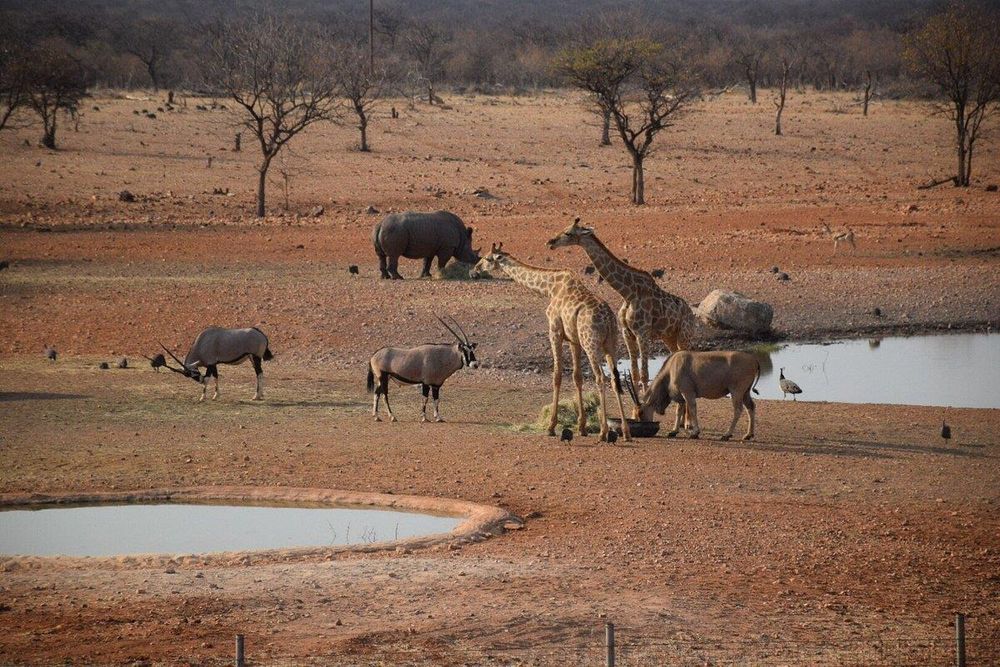 The Lodge offers a fenced in Private runway for your fly in Safaris. Own large trecks of mountain and plains zebra where springbuck mingle with Oryx and bathing Elephants at the waterholes. You will spot Rhino, Giraffe, Leopard, Wildebeest, Cheetah, Hyena, Kudu, Eland and among the small species Jackal, Bat eared Fox, Honey badger, ground squirrel, Mongoose, Ostrich and Peacock.
