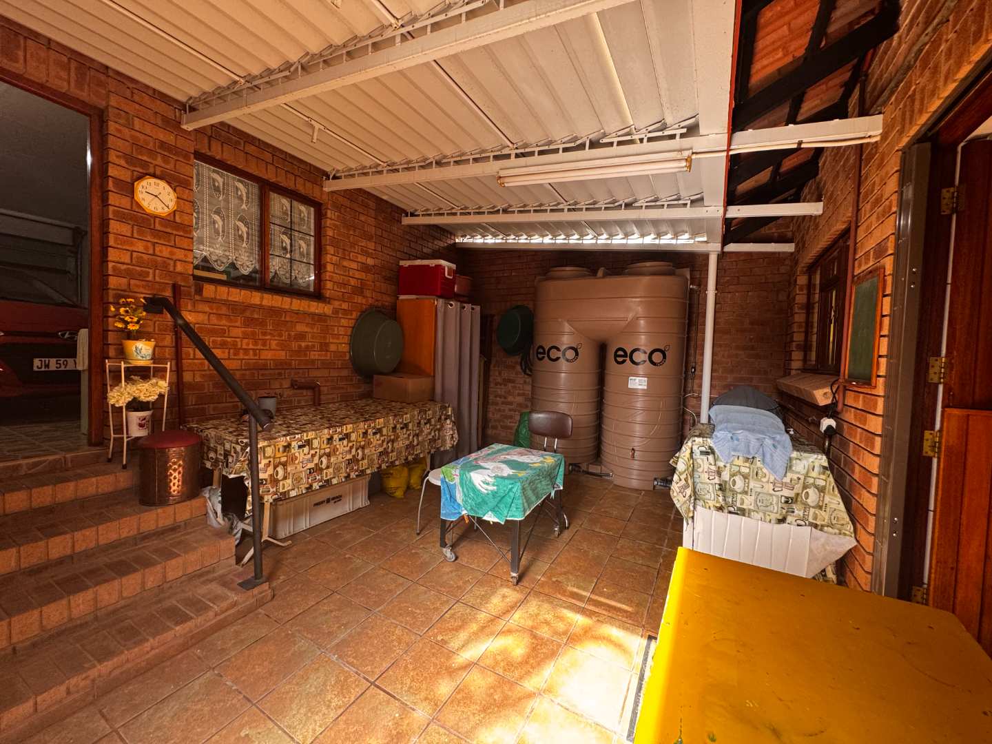 Constructed with quality in mind, the home features a durable tiled roof and solid brick walls and inside, you'll find elegant tiled flooring throughout, adding to the home's cosy charm. Additional features include 2 fitted gutters connected to water tanks and a pressure pump, providing an efficient and eco-friendly water solution.
