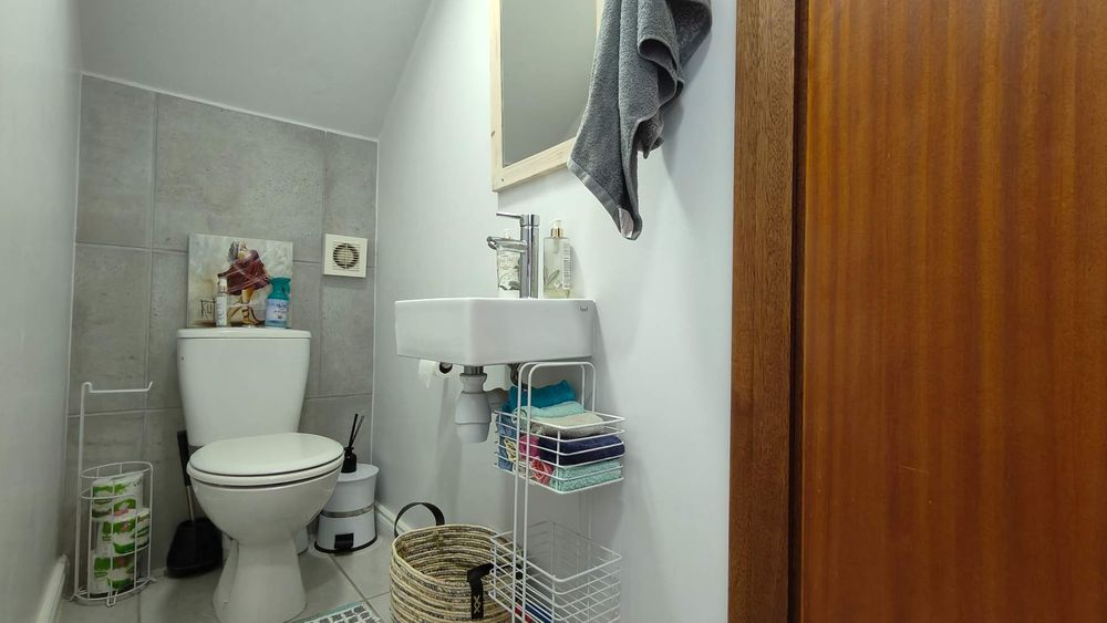 On the ground floor, you'll find a spacious double garage and a convenient guest WC, a guest bedroom with an en-suite shower room that offers privacy and comfort for visitors. The heart of the home is the kitchen, complete with a scullery, which seamlessly flows into an open-plan dining room and lounge, this area features a built-in braai and is adorned with large windows and a door that opens to a private courtyard garden, perfect for outdoor gatherings.